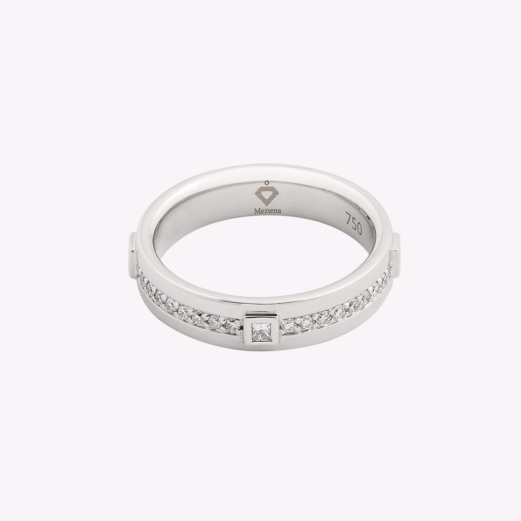 Signature Ring – 18K white gold with princess- and round-cut VS white diamonds. Available in sizes 8cm to 24cm (Grand)